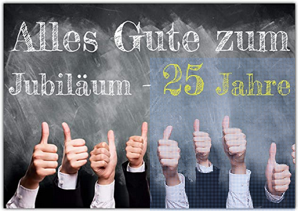 Zu diesem Jubiläum möchten wir Euch die herzlichen Glückwünsche überbringen und Euch für Euer Engagement und für den unermüdlichen Einsatz der letzten 25 Jahre danken.
