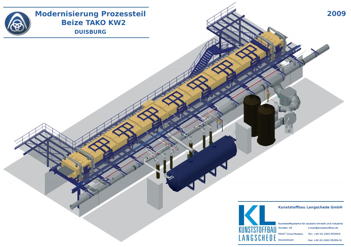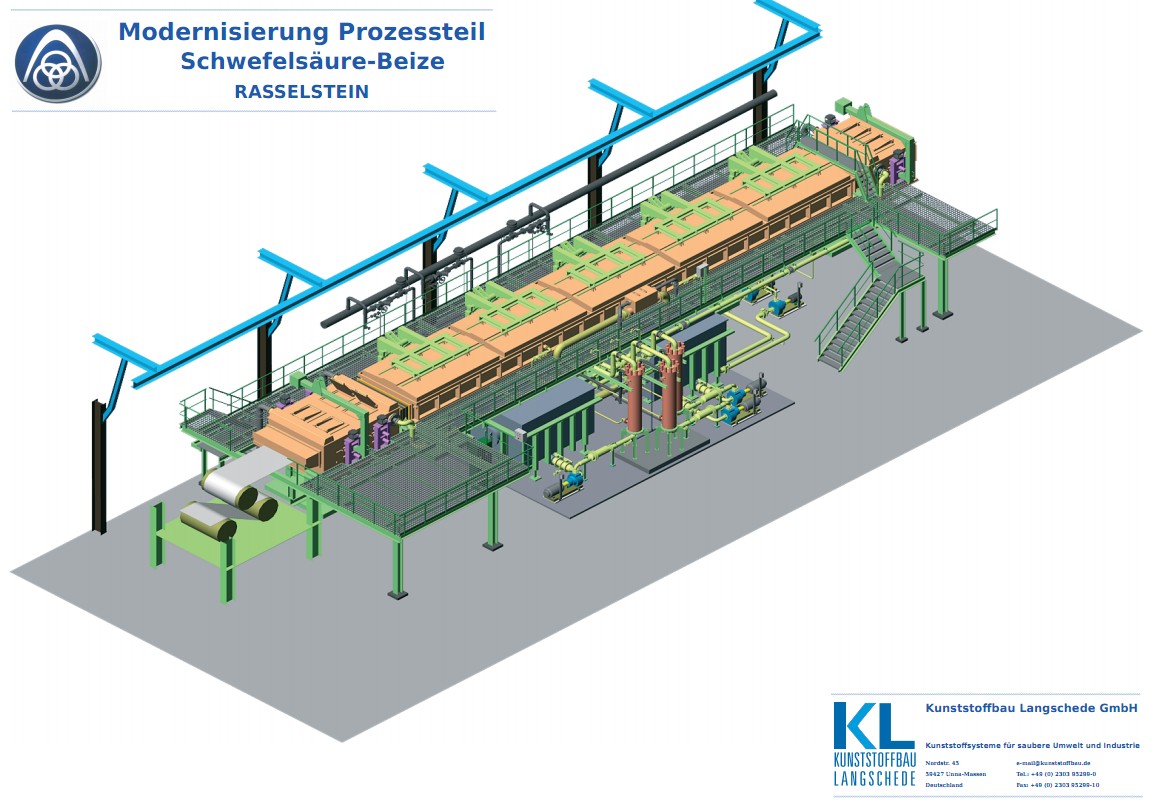 Wir bieten Ihnen als Komplettsystemlieferant die Entwicklung, Produktion, Lieferung, Montage und Wartung kompletter verfahrenstechnischer Anlagen. Für die Stahlindustrie fertigen wir komplette Beizstraßen und die dazugehörigen Spülbehälter. Unsere Kunden profitieren von unserem Know-how sowohl im Bereich der Rundbehälter als auch der Lagertanks und Sonderbehälter, und zwar bei Planung, Engineering und Fertigung.